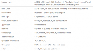 Overhead Aerial Outdoor Fiber Optic Cable Span 100m for Communication